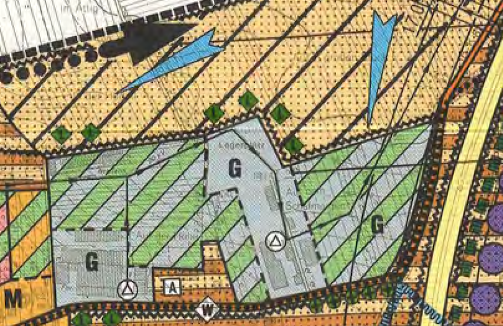 Baurecht: Stand der Dinge ist, dass im Erläuterungsbericht, gemäß § 5(5) BauGB, des aktuellen gültigen Flächennutzungsplans mit der dort vorhandenen Gewerbegebietsausweisung, wozu der “Teilbereich West” gehört, eine sehr zurückhaltende Gewerbegebietsplanung und insbesondere keine zu erwartende Existenzbeeinträchtigung der landwirtschaftlichen Betriebe bekundet wird.