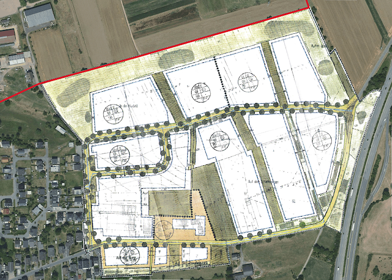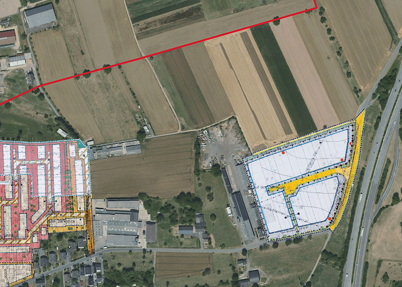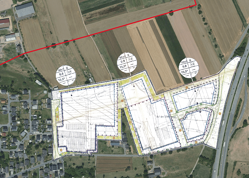 Versorgungstrassen einer Nordausdehnung würden unweigerlich, wie schon erwähnt, sowieso durch den Teilbereich West laufen müssen. Und im Teilbereich West haben wir vorbereitete Erschließung mit vorhandener Infrastruktur, für Breitband/Glasfaser, Kanal, Strom und sogar ein großer Teil Gewerbe im Bestand.