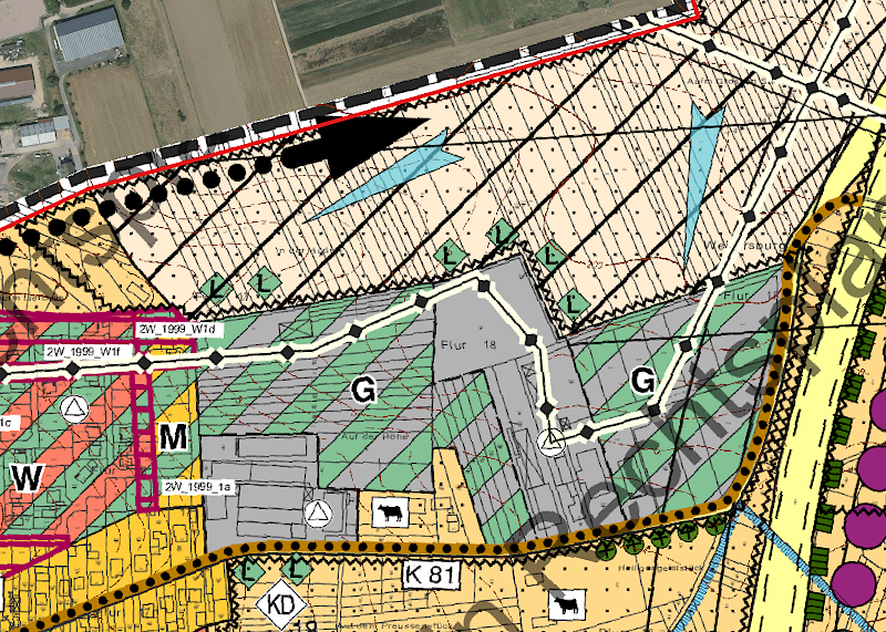 Wie schon eben erläutert geht es uns nur um das Gebiet, welches der Ortsbürgermeister 1992 als “schon vorhandenes Gewerbegebiet” bezeichnet hat, nicht der gesamte Vorentwurf.