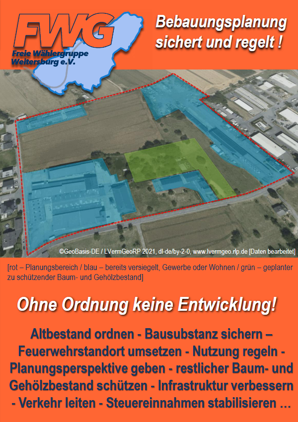 Derzeit wird ein neuer Flyer - “Bebauungsplanung sichert und regelt!” - in die Weitersburger Haushalte verteilt. Unser Motto lautet: